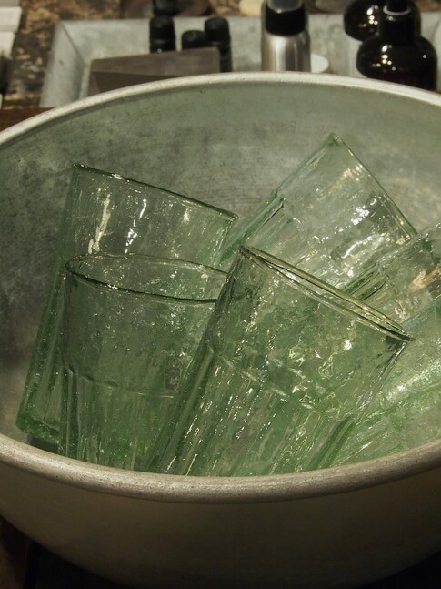 気泡を多く含み青みがかった色味が特徴のビアホイグラス
